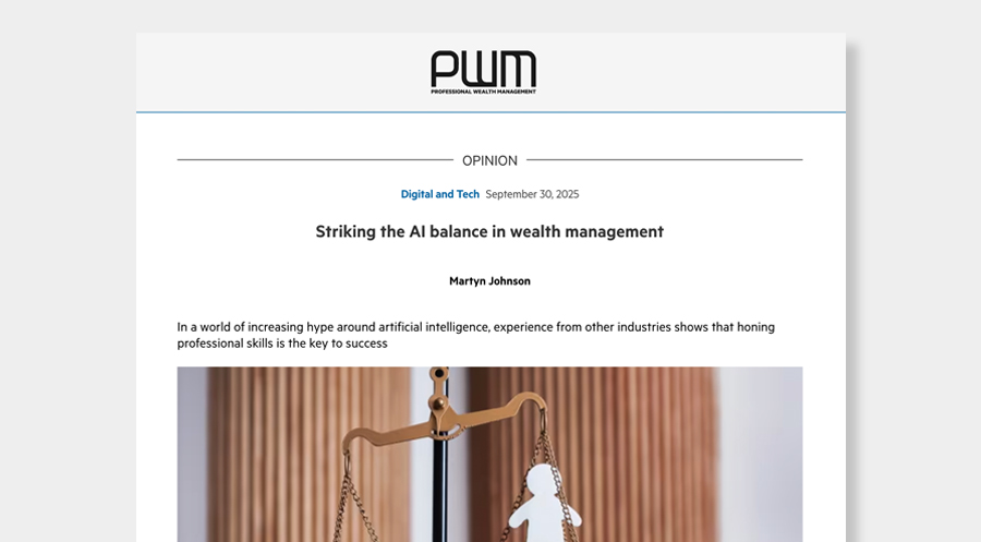 Professional Wealth Management – Striking the AI balance in wealth management by Martyn Johnson